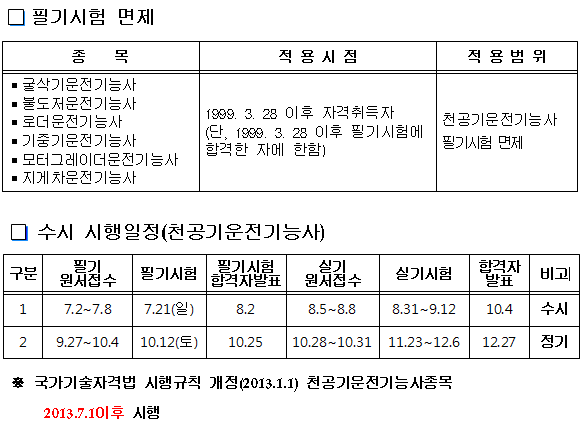 <천공기운전기능사 필기시험 면제 관련 안내>
