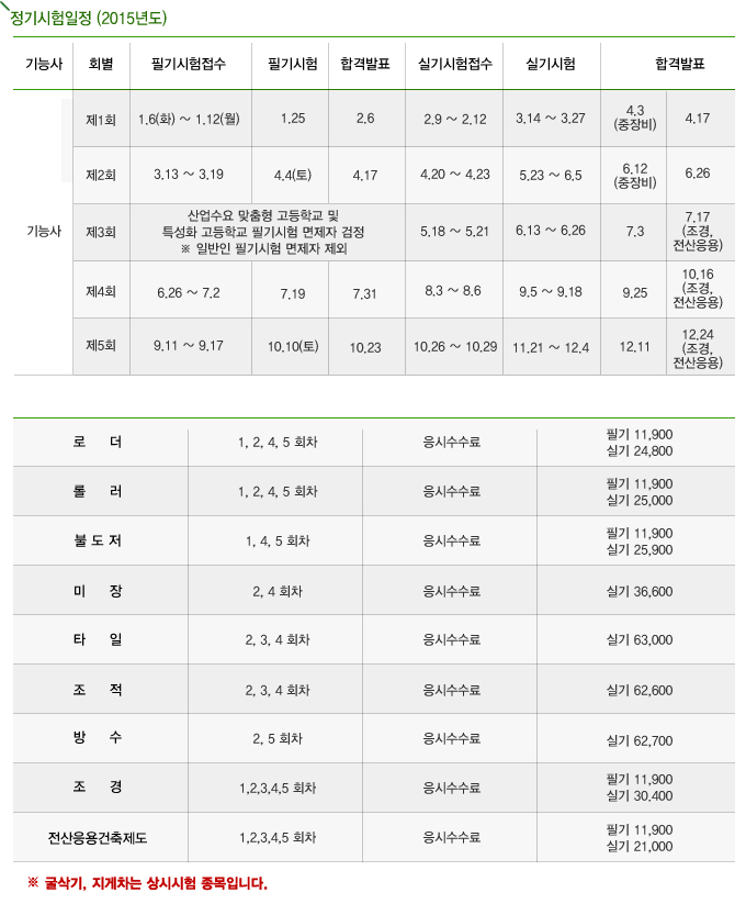 2015년 국가기술자격검정 일정 안내
