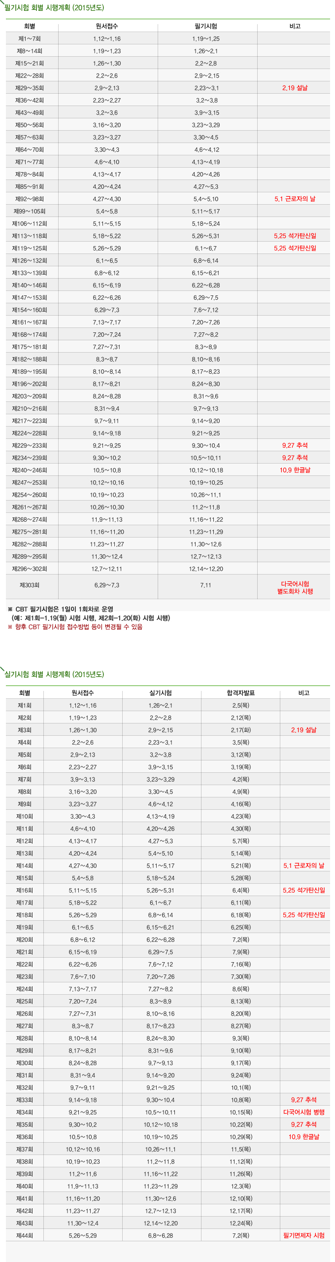 2015년 국가기술자격검정 정시 및 상시 시험일정이 발표되었습니다.