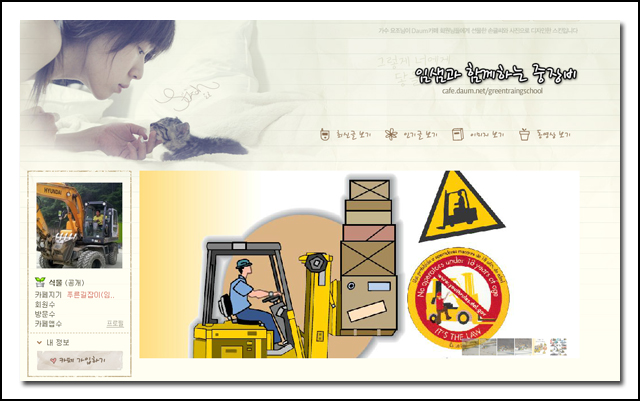 열정적인 지도방식으로 유명한 임용남 선생님이 꾸준히 가꾸어 오던 카페가 드디어 공개되었습니다. 훈련생 여러분께서도 자주 방문하셔서 유용한 정보들을 얻어가시기 바랍니다. <임샘과 함께하는 중장비> 바로가기